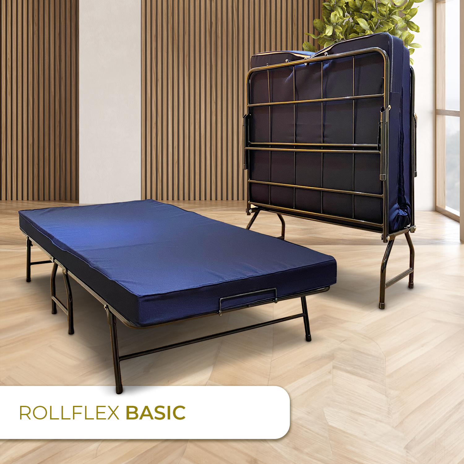 The Rollflex Rollaway Bed by Uratex is a ready-to-use extra mattress and bed frame available in upright and foldable options that are suited for hotels and other lodging-type businesses. This extra bed has a durable coated frame paired with a mattress that is covered in jacquard or semi-knitted fabric. The metal frame has the option for caster wheels for easy movement and storage.